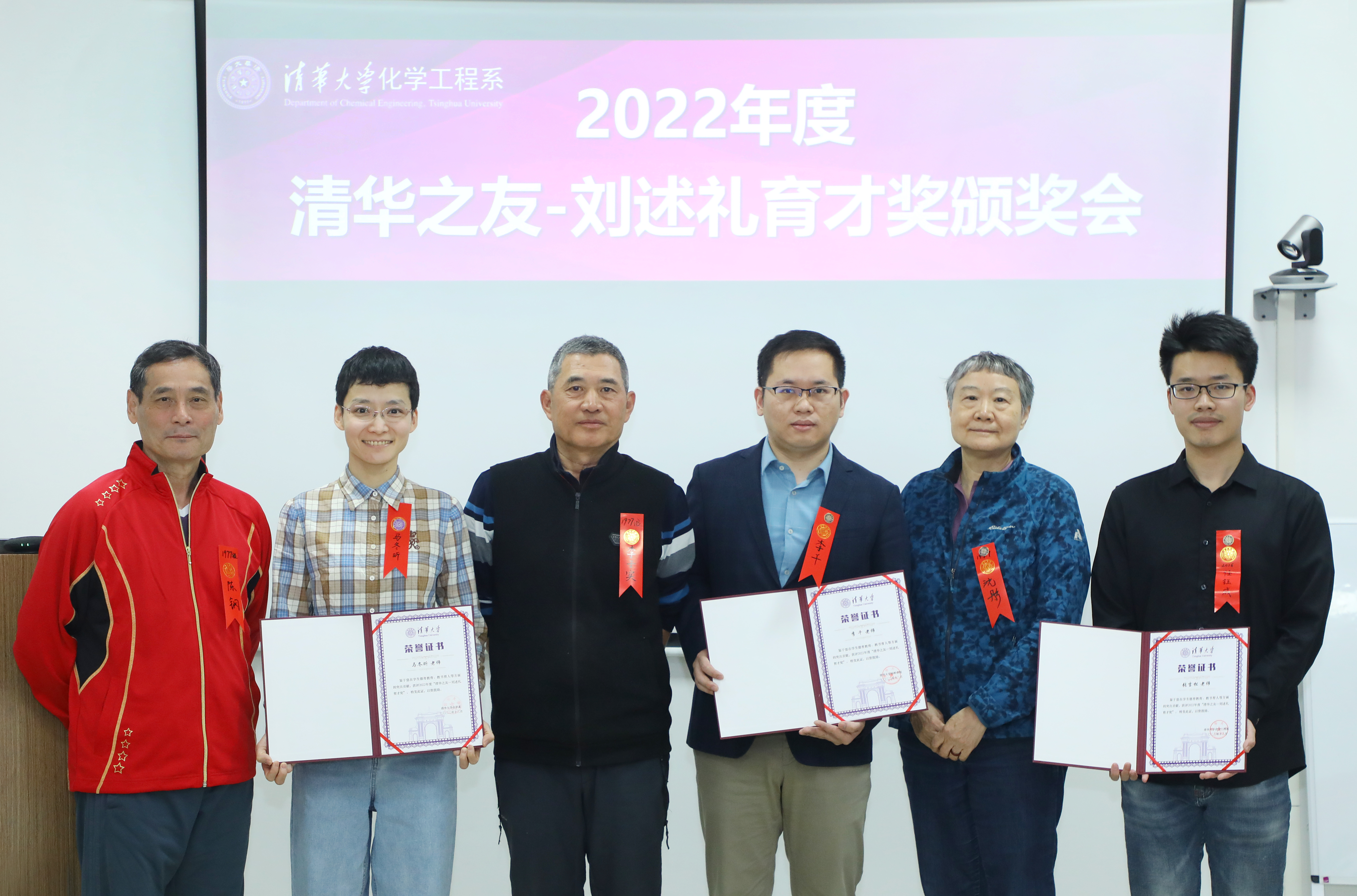 化工系学生工作组组长张吉松、化学系学生工作组组长马冬昕、材料学院党委研究生工作组组长李千荣获2022年刘述礼育才奖。王铁峰宣读获奖名单,并介绍每位获奖老师事迹。基金捐赠人代表李子实、陈钢、沈彤为获奖教师颁奖。