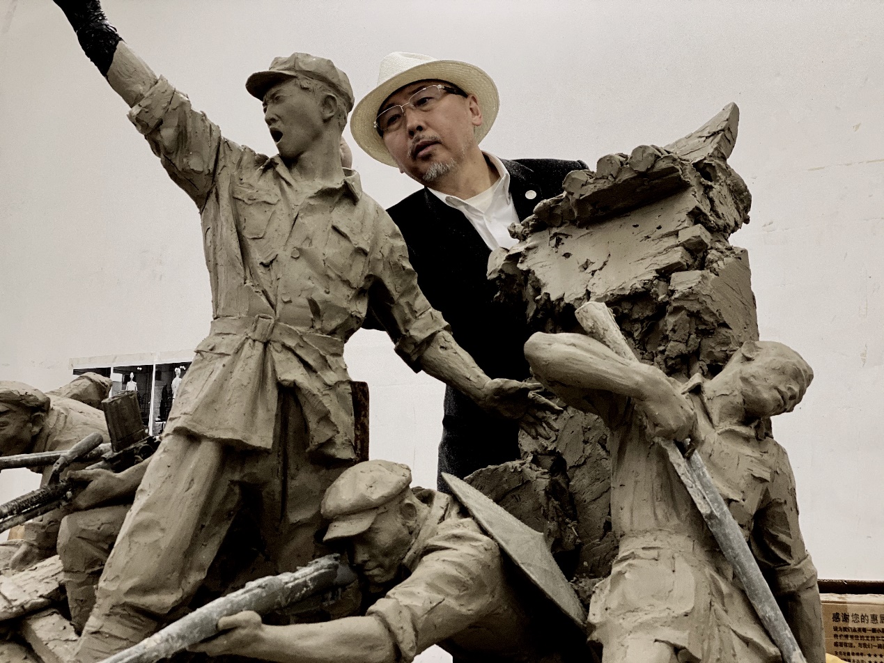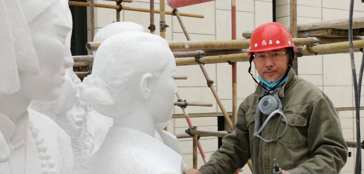 李象群在创作群雕《追梦》