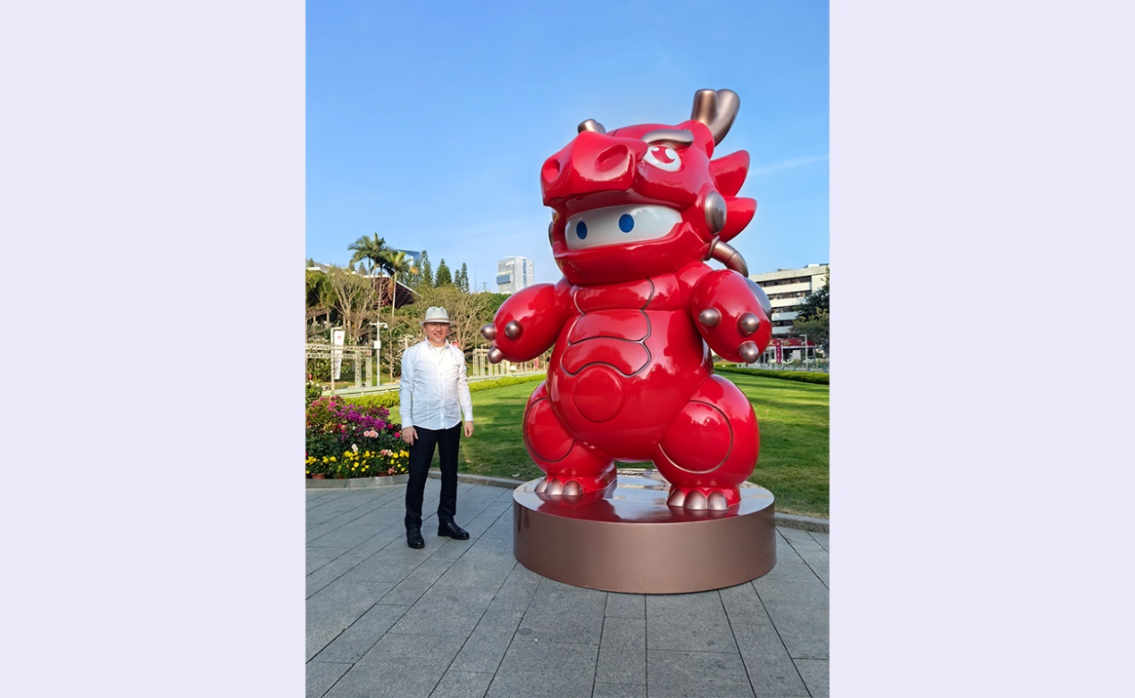 李象群和他为甲辰龙年创作的雕塑《龙象》