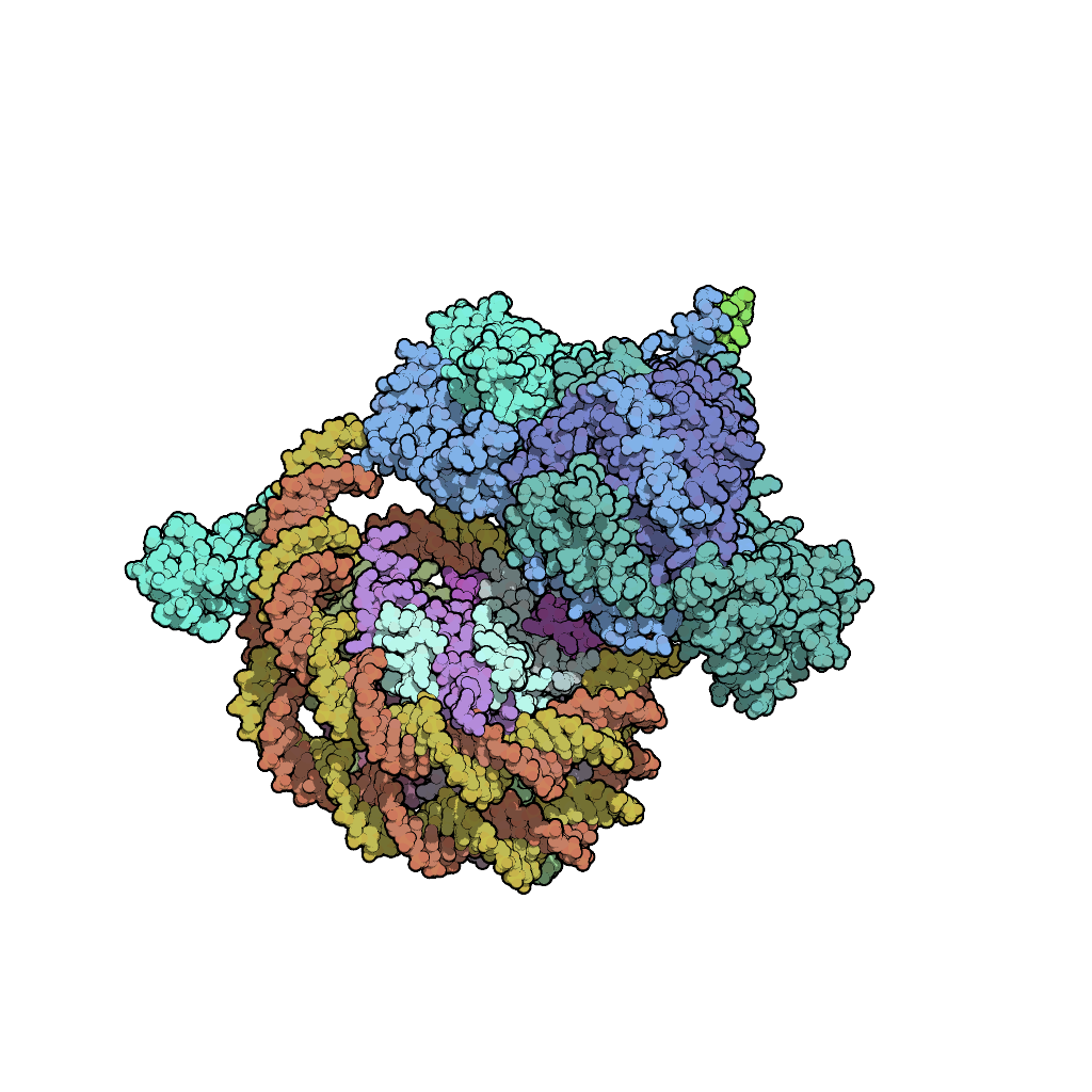 左手一侧,Eaf3、Sin3、Rco1的组合通过对两个H3K36me3标记、核小体DNA和连接DNA的多价识别,将Rpd3的催化中心定位在H4 N末端尾部附近,进行去乙酰化。