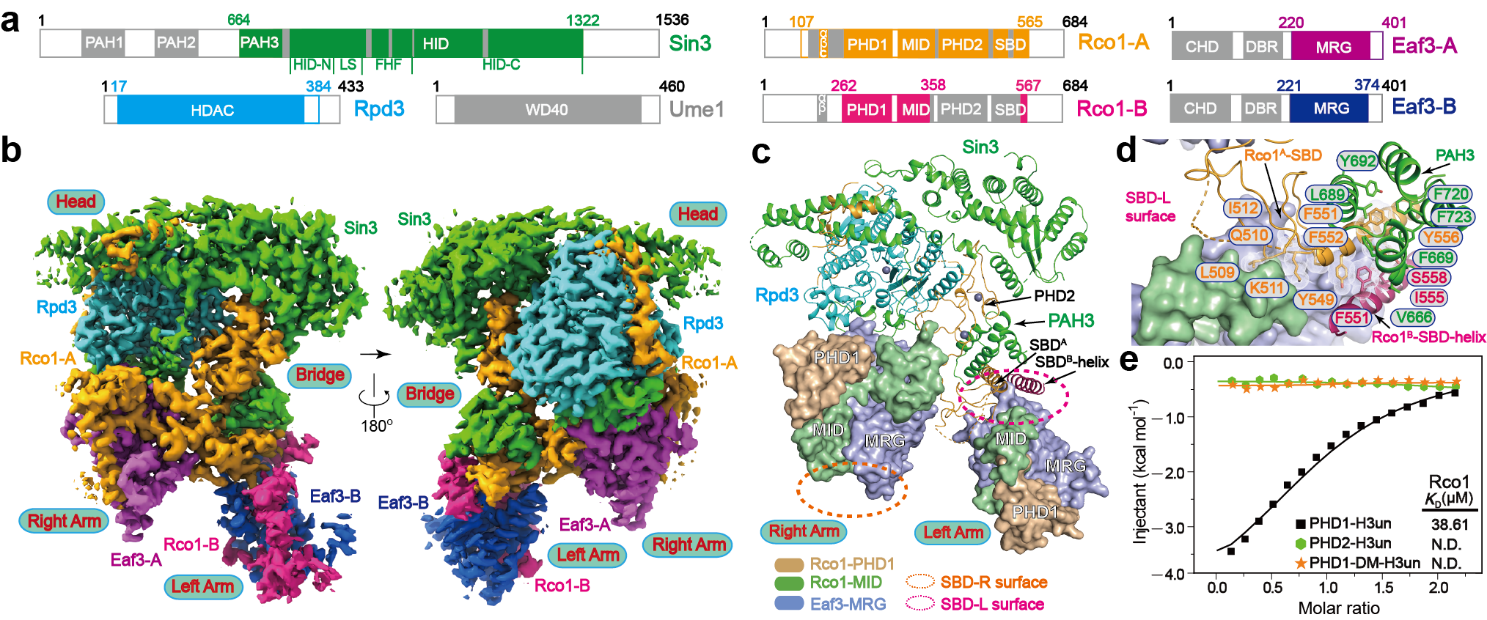 1996年,Rpd3首次被报道作为组蛋白去乙酰化酶(HDAC)发挥作用,这一发现与同年组蛋白乙酰转移酶(HAT)GCN5的转录共激活功能发现一起,标志着现代表观遗传学的兴起。但在其后的20年间,Rpd3的分子结构及其调控机制一直没能得到深度解析,成为表观遗传领域的关键谜题之一。