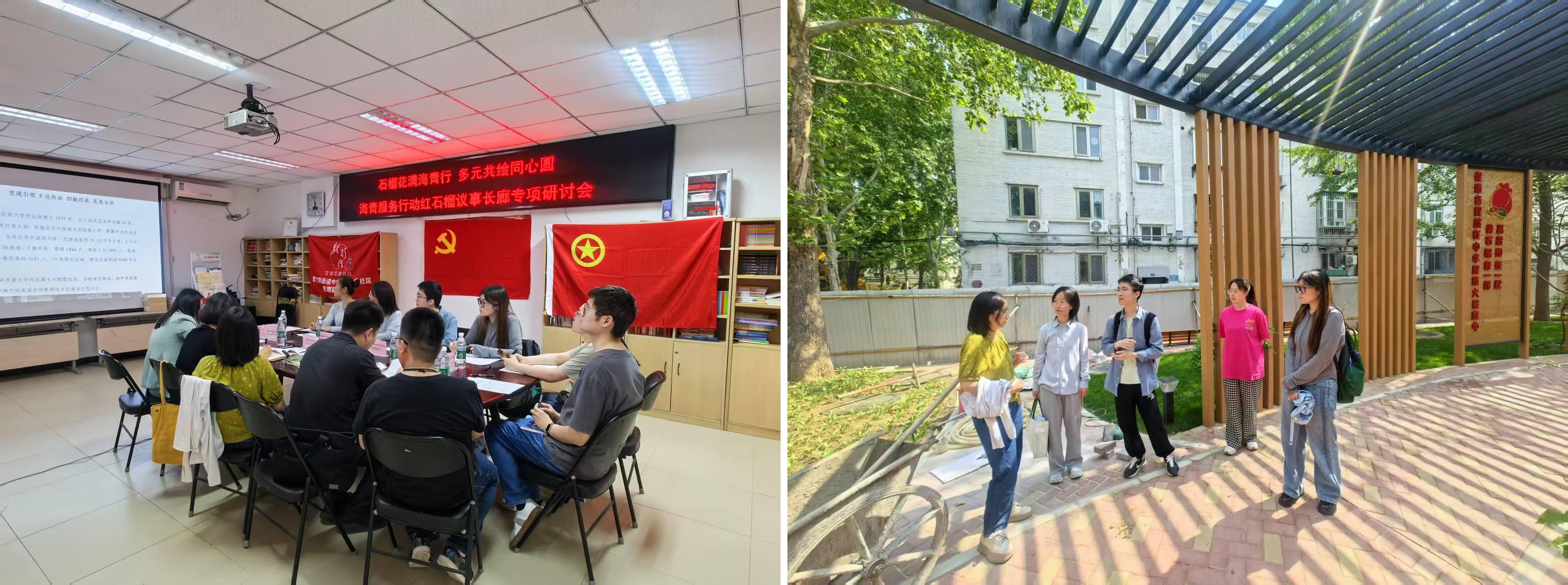 5月13日,beat365英国官方网站研究生团委与新闻学院研团总支走进紫竹院街道中央民族大学社区居委会,围绕“海·清”社区服务行动如何引导同学们在志愿服务与劳动锻炼中融入民大社区民族团结与统一战线工作开展座谈交流,并参观红石榴议事长廊。
