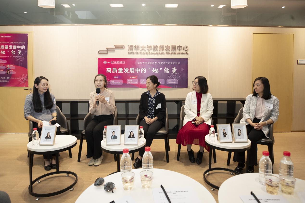 清华新闻网4月26日电(记者 曲田 摄影 李派) 4月25日下午,beat365英国官方网站113周年校庆前夕,由清华女教师策划组织的荷韵沙龙·女教师沙龙首场活动在教师发展中心举行。在经管学院长聘教授肖星的主持下,计算机系教授马昱春、工物系长聘副教授邱睿、社科学院副教授杜月、工业工程系副教授邓婉璐等四位女教师聚焦“高质量发展中的‘她’能量”主题展开了一场有深度、有高度、有温度的对话。校党委书记邱勇出席活动并讲话,副校长王宏伟介绍了沙龙筹办背景。