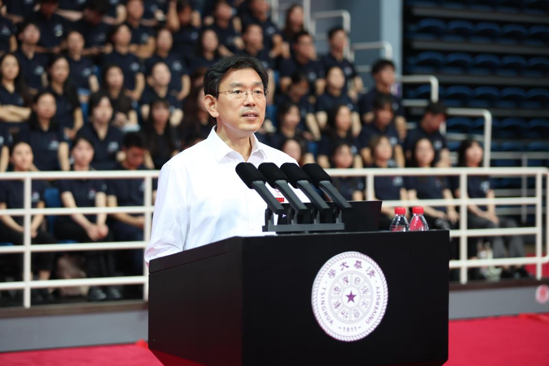校长李路明发表了题为“肩负使命,走好创新之路”的讲话。他指出,创新是研究生学习生活的主旋律。三次工业革命和我国近代历史让我们深刻认识到,创新始终是推动人类社会进步的重要力量,是百年变局中的“关键变量”。自强成就卓越,创新塑造未来。清华人要心怀“国之大者”,坚持“四个面向”,将创新精神作为自强精神在新时代的最好展现,在创新之路上踔厉奋发、勇毅前行。李路明表示,对拓展认知疆域、推动文明进步的渴求,让创新的脚步永不停歇。清华师生在前沿科学问题探究和人类思想文化探索方面屡结硕果,无一不是为服务国家科技自立自强和经济社会发展,埋头苦干、久久为功的结果。希望同学们继承和发扬爱国奉献、追求卓越的清华传统,瞄准国际学术前沿捕捉创新灵感,聚焦国家战略需要寻找创新命题。注重交叉融合、坚持开放合作,让创新之路越走越宽。清华倡导中西融会、古今贯通、文理渗透,为同学们提供了学科交叉融合、国际交流合作的平台,希望大家广泛涉猎、博采众长,开拓视野、拥抱世界,在兼收并蓄、互学互鉴中提升创新能力。遵守伦理规范、践行优良学风,让创新之路行稳致远。“严谨、勤奋、求实、创新”是清华的学风。希望同学们严守学术规范,传承优良学风,做到行胜于言,让创新的步伐走得更有底气、更加坚实。