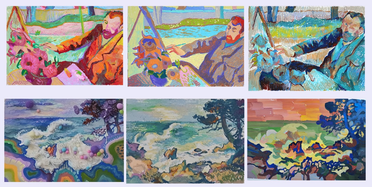 对大师画作进行解构和变体,让学生重识名作,用自己的理解重绘经典。布拉克的《静物》、塞尚的《风景》、德加的《舞台上的舞女》、高更的《高更画梵高》……一幅幅大师画作在变幻的色彩中重新表达、焕发新生。从名画变体到自由创作,课程希望通过色彩课程的学习,启发学生在东方与西方、传统与现代的比较中来认识色彩语言的整体建构特征,从而对色彩表现规律拥有较为系统的认识和掌握,同时又具备色彩个性语言的表现能力。