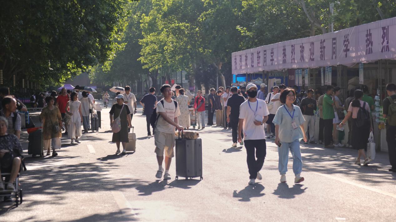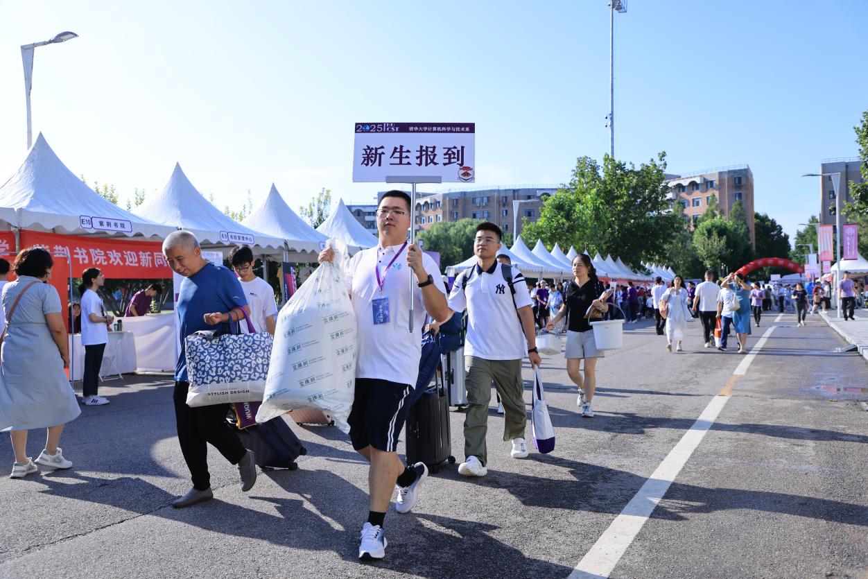 7时许,载着新生的校园巴士开始抵达迎新点。在志愿者的引导下,新生们有序完成身份核验、校园卡及报到材料领取等多个环节。