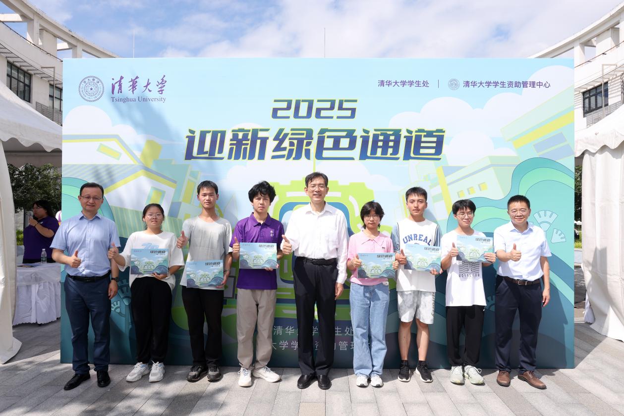 在学生服务中心(C楼)前的绿色通道,李路明看望受资助新生并向他们赠送“爱心大礼包”。礼包里有教材卡、电脑卡、购物补贴、自行车卡、游泳卡、观演卡等各类卡片,覆盖了学生在校学习、日常消费、文体活动等多方面需求。他亲切询问了受资助新生们的情况,表示学校会充分支持和保障同学们在清华的学习成长,希望大家心怀家国理想,脚踏实地努力,在不懈奋斗中绽放青春光彩。