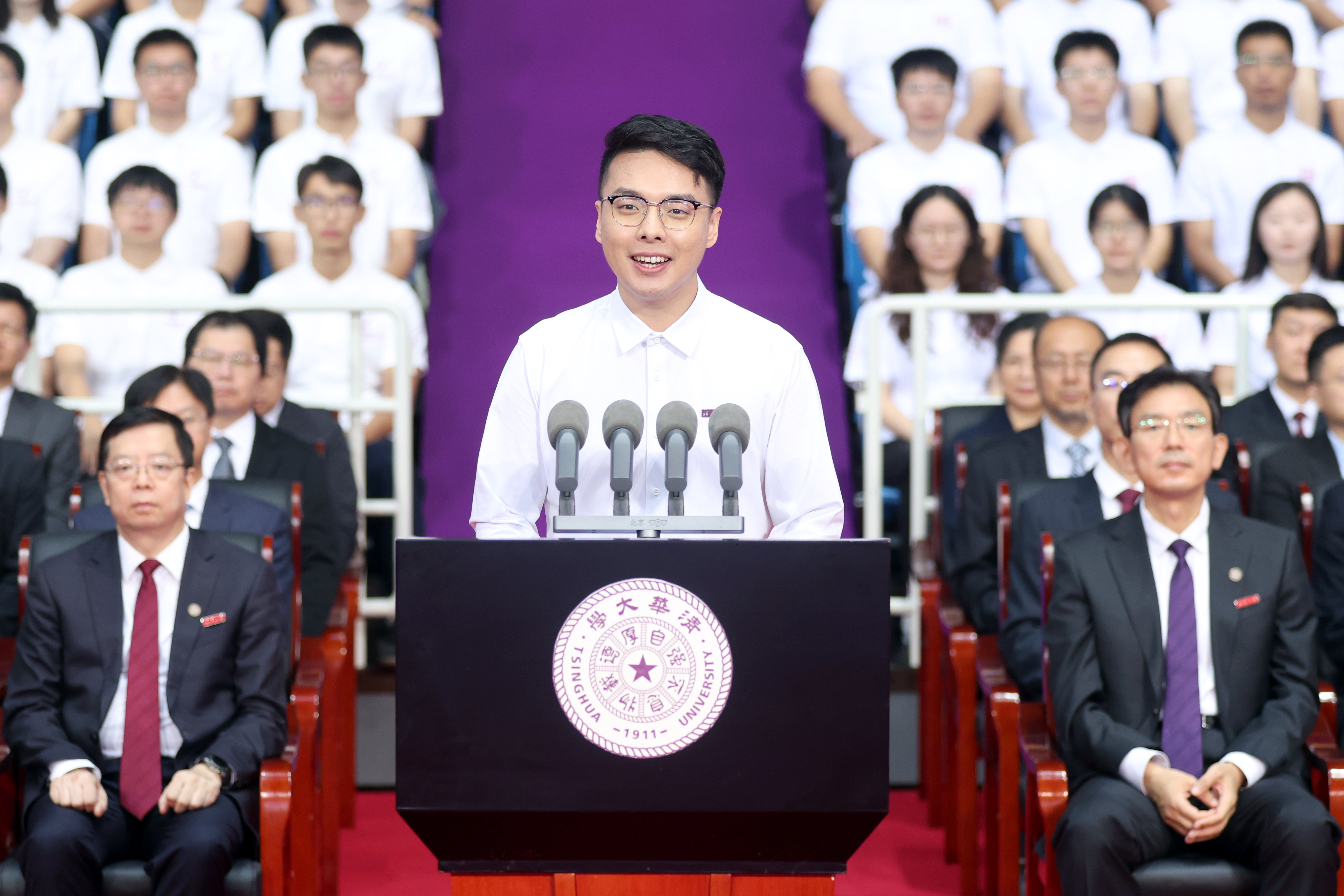 我们的奔跑,首先是攻坚克难、勇攀科学高峰的奔跑。我在博士一年级时认识了课题组师兄、材料学院2014届校友方洲学长。当时,他已经担任神舟十二号返回舱工程师。看到我的一次实验失败后,学长用自己的经历安慰我说:“研究就像是探海寻针,看不清前路,只能通过一次次重复的实验不断试错。”面对科研上的前路茫茫,他以“清华方洲守护方舟”勉励自己,带领团队屡败屡战,近千次试验的跌倒爬起最终淬炼成一句:“返回舱,安全”。可以说,科研道路从来不是一条平坦的阳光大道,而是充满艰辛与挑战的长途马拉松。我的同级同学、地学系博士生孙艺达是今年研究生“学术新秀”的获得者,他将自己的科研进程比作“长征”。入学后的前三年,我并没有看到他有什么学术成果的发表,只是看到他和大多数同学一样,每天往返于宿舍、食堂、课题组。后来我才知道,这三年他经历了千百次模型崩溃、数百万组参数的模型模拟,终于构建出未来气候变化对全球经济影响的风险量化模型,最终,他的研究成果取得了国际学术同行的一致认可。耐得住冷板凳的寂寞,经得起反复的推倒重来,才能收获科研上的柳暗花明。同学们,进入了清华,让我们一起以向上的执着、向前的力量、向新的勇气,在科研道路上砥砺前行。