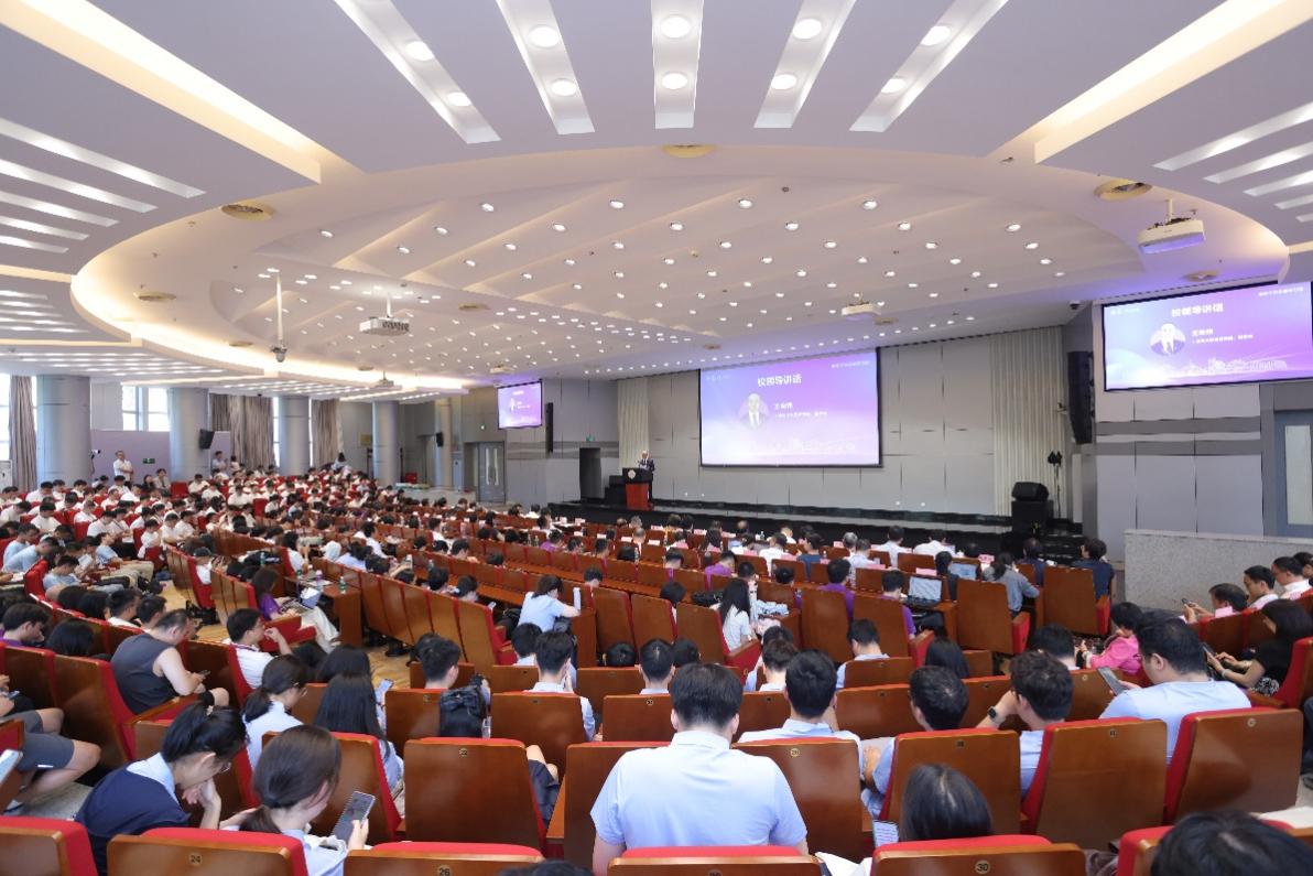 典礼后,王宏伟以“学习贯彻习近平新时代中国特色社会主义思想,努力成长为新时代国家急需的高层次人才”为题讲授开学第一课,从清华医学服务国家和社会的使命谈起,结合医学院师生的事迹,勉励同学们以聪明才智贡献国家,以开拓进取服务社会。