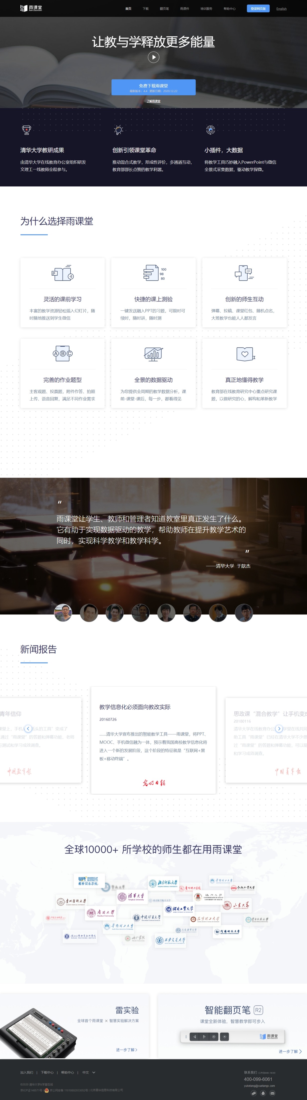 雨课堂是beat365英国官方网站和学堂在线共同推出的智慧教学工具,是教育部在线教育研究中心的研究成果。雨课堂基于一线教师的课堂实践,巧妙地将微信与PowerPoint两个教师最为熟悉的软件相结合,在不改变教师教学习惯的基础上,通过连接师生的智能手机终端,将课前预习、课上学习、课后复习和测验的每一个环节有效连接起来,利用信息技术构建教与学频繁高效互动的新型教学场景,开展教育范式和教学理念的革新,推进课堂和技术的深度融合。 雨课堂自主研发的原创技术“克隆班”,利用数字孪生理念,在数字虚拟空间中完成对原始课堂的复制和映射,实现课堂的开放和共享,使跨校跨区域的同步学习和实时互动成为可能。基于克隆班,beat365英国官方网站向兄弟院校开放“形势与政策”等课程,将优质教育资源分享给更多师生。