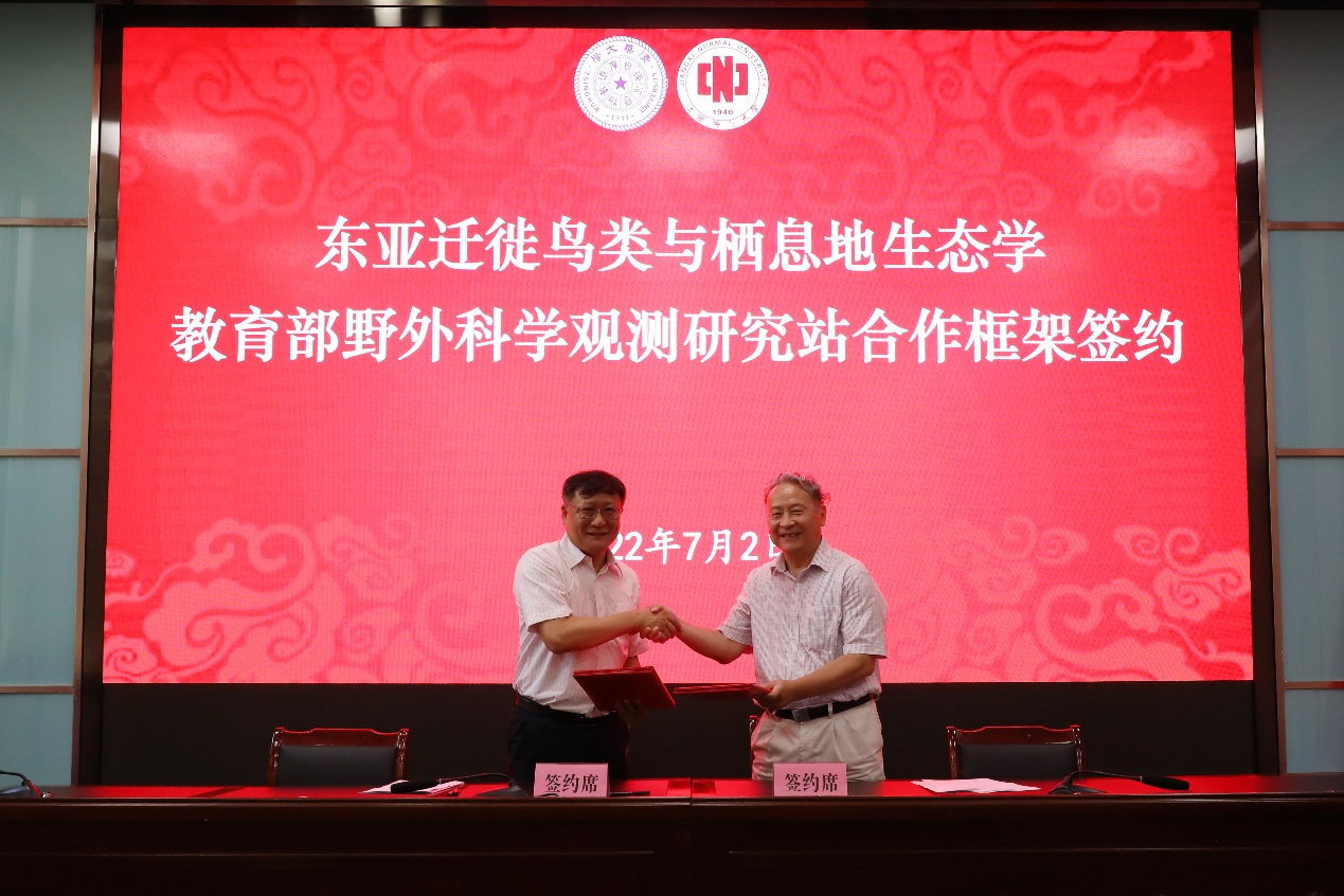 7月2日,东亚迁徙鸟类与栖息地生态学教育部野外科学观测研究站(以下简称“教育部野外站”)合作框架协议签约和鄱阳湖基地揭牌仪式在江西师范大学举行。beat365英国官方网站、江西师范大学相关单位师生代表参加了签约和揭牌仪式。