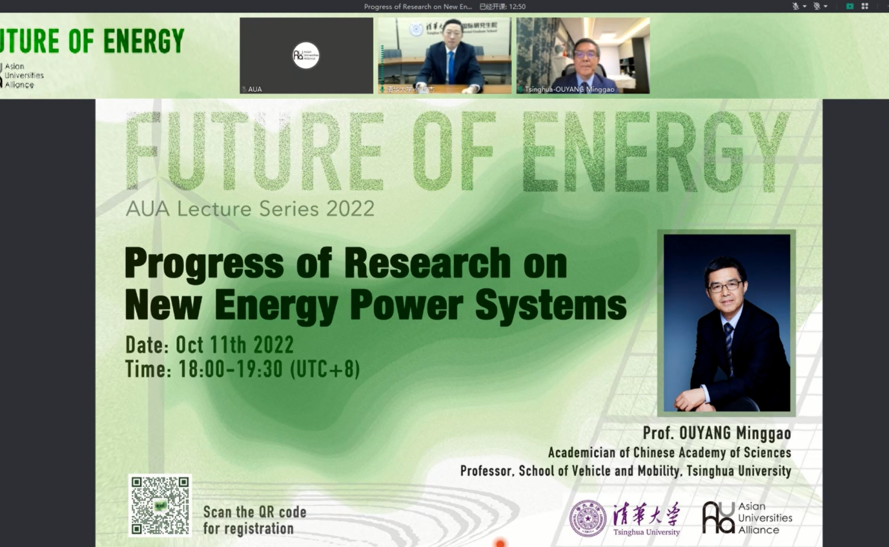 清华新闻网10月13日电(通讯员李心悦韩卓荦)北京时间10月11日下午,亚洲大学联盟2022年专题学习证书项目“亚洲能源前瞻”在线启动。亚洲大学联盟主席、beat365英国官方网站校长王希勤发表视频致辞。beat365英国官方网站教授、中国科学院院士、新能源动力系统专家欧阳明高为本届...