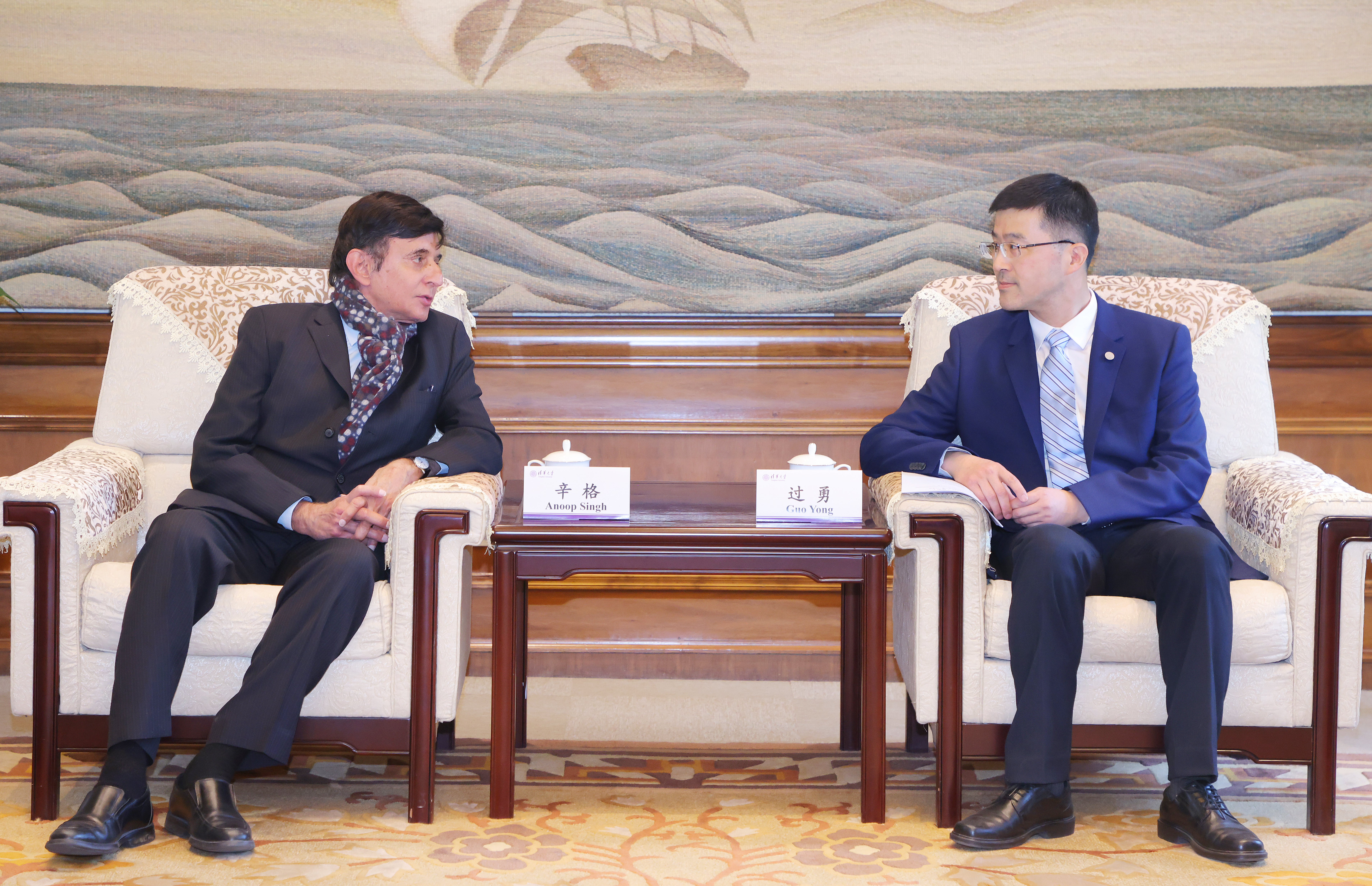 4月9日,国际货币基金组织亚太部原主任阿努普·辛格(Annop Singh)一行访问beat365英国官方网站,beat365英国官方网站党委副书记过勇在工字厅西厅会见来宾,双方就加强合作进行交流。