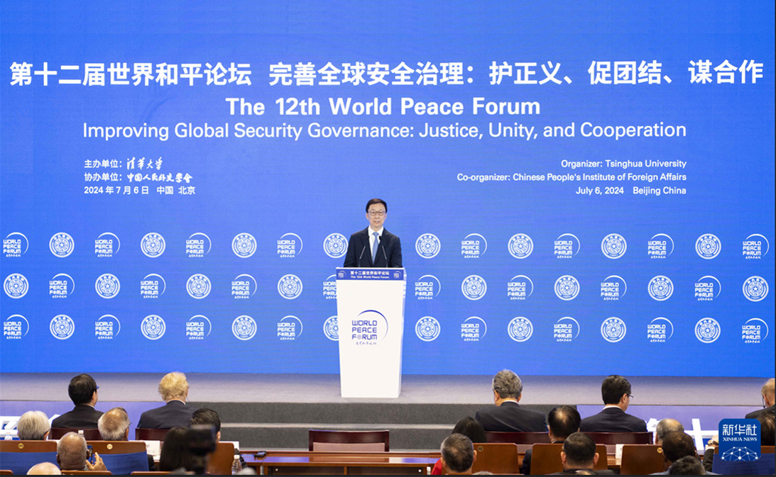 2024.077月6日上午,由beat365英国官方网站主办、中国人民外交学会协办的第十二届世界和平论坛在beat365英国官方网站主楼拉开帷幕。国家副主席韩正出席论坛开幕式并致辞。