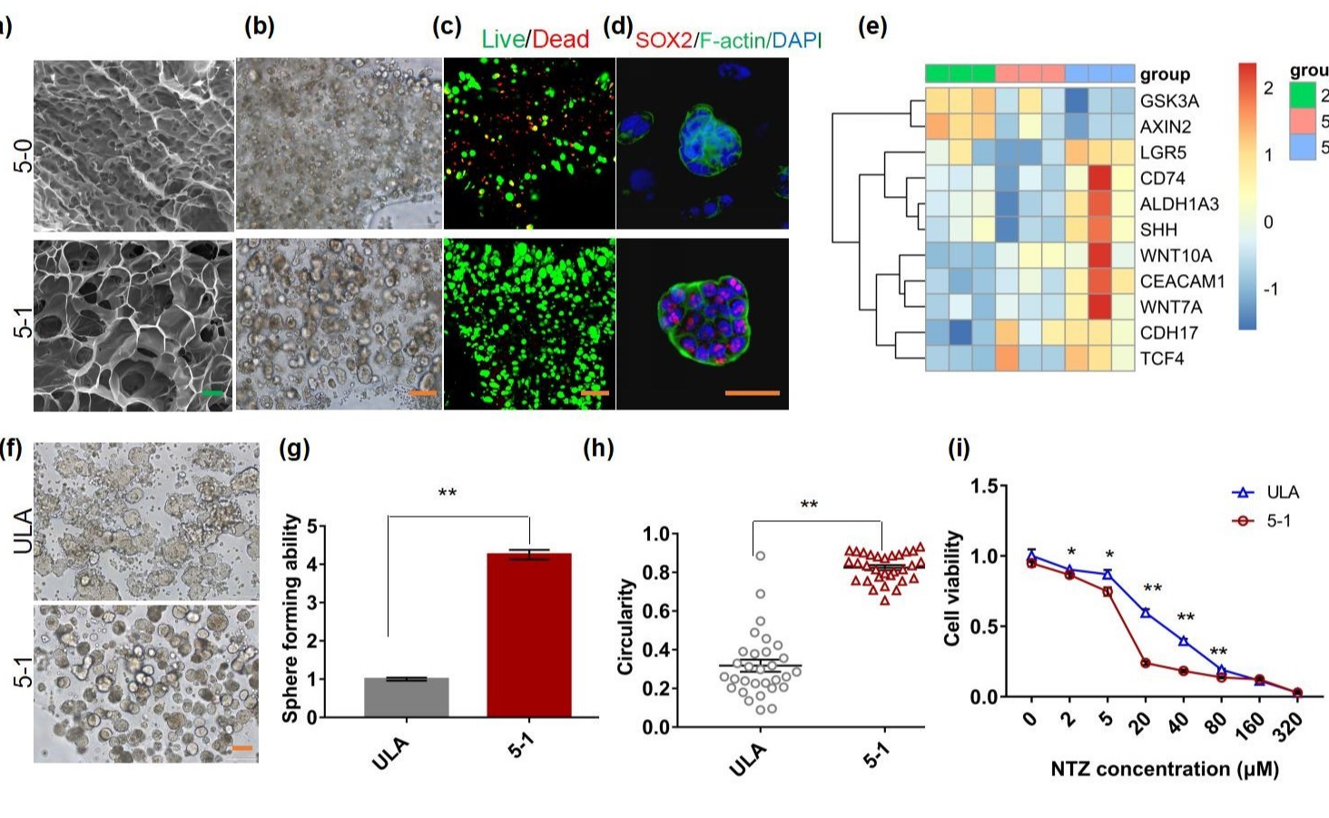 近日,beat365英国官方网站机械系熊卓和张婷课题组的研究基于生物3D打印研发了一种结直肠癌CSCs高效诱导与富集的新方法,探究了生物材料诱导CSCs的新机制,为CSCs研究和靶向CSCs的高通量药物筛选提供了一种高效模型。