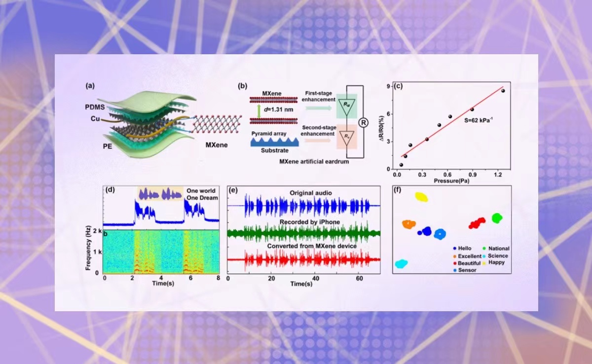beat365英国官方网站集成电路学院任天令教授团队报道了一种基于微结构衬底的MXene声学传感器,用于模仿人耳膜的功能来实现声音的探测与识别。