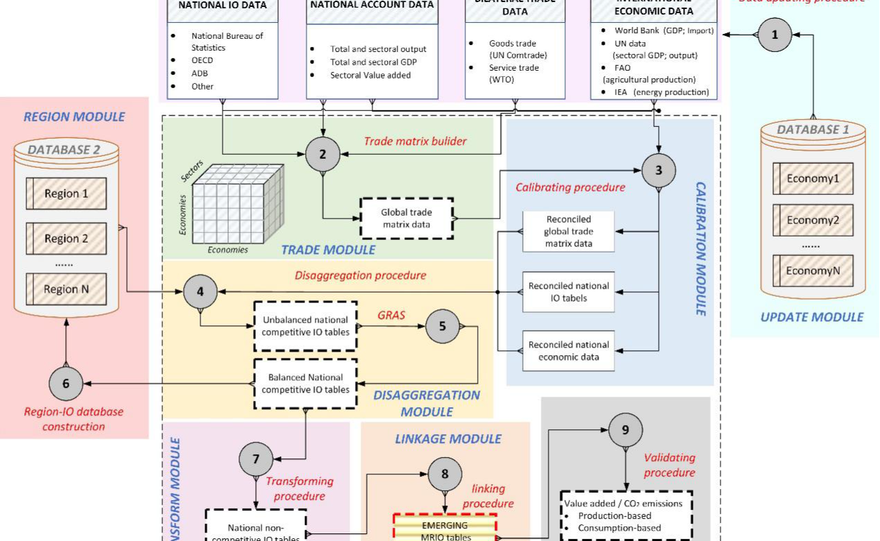 地学系关大博教授课题组经过5年多的筹划和准备,构建出全球首个全域尺度、长时间序列、模块化数据采集、聚焦全球发展中国家经济体的多区域投入产出模型。