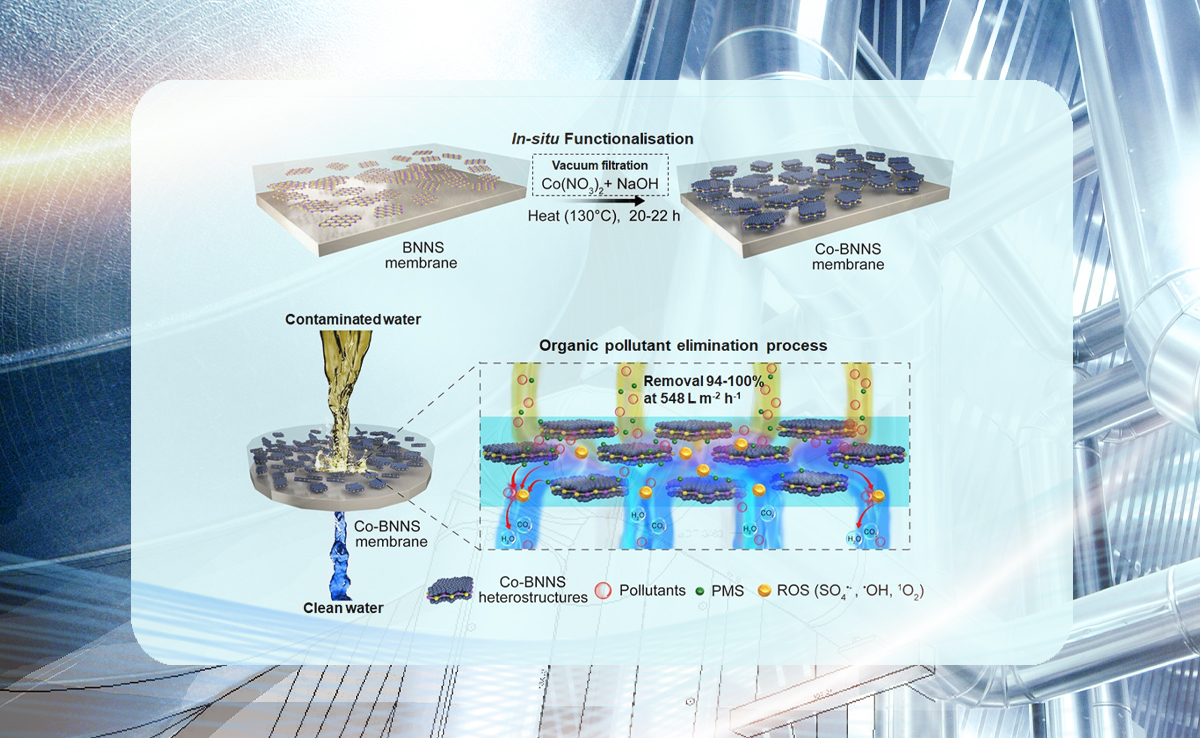 在本研究中,团队提出了一种原位功能化氮化硼纳米片(BNNS)膜层间纳米通道的方法,将纳米催化剂、活性氧(ROS)和流体同时限域在层间,实现有机污染物的超快降解。