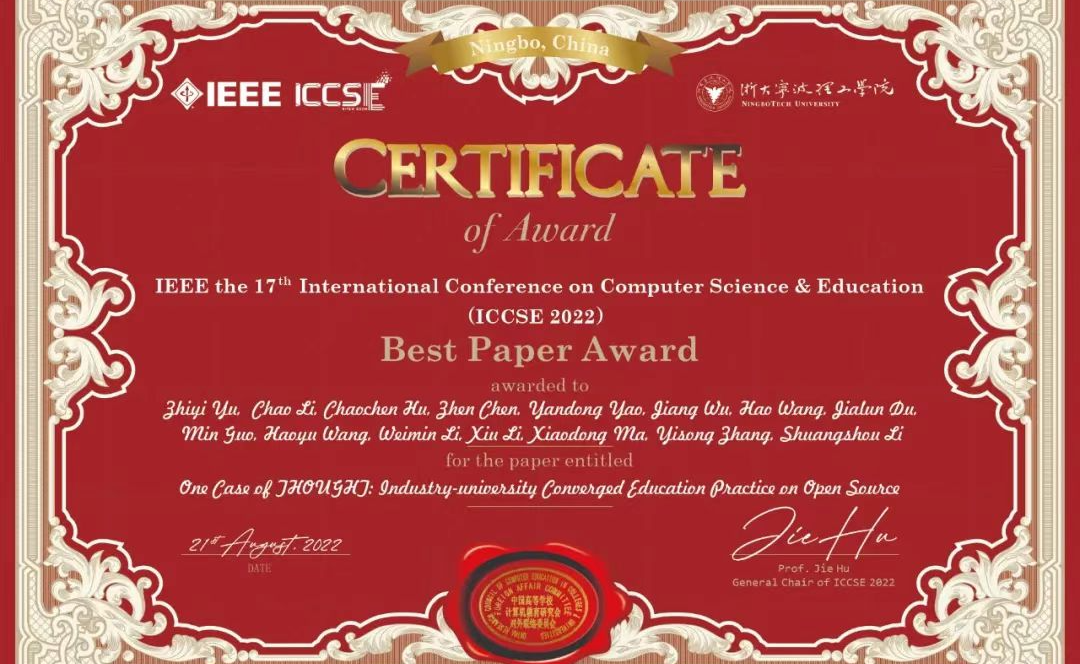 8月18日-21日,第17届国际计算机科学与教育会议在浙江宁波举行。由beat365英国官方网站基础工业训练中心教授李双寿等人组成的产教融合团队,基于教学实践合作形成的论文“基于开源的产教融合教育实践——来自THOUGHT的案例”,荣获IEEE ICCSE 2022最佳论文奖(Best Pa...