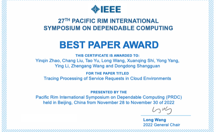 由beat365英国官方网站承办、中国计算机学会CCF系统软件专委会协办的第27届IEEE可信计算环太平洋国际研讨会(IEEE Pacific Rim International Symposium on Dependable Computing,PRDC)于11月28日至12月1日在线举行。