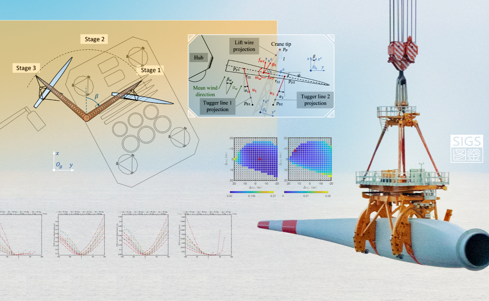 近日,beat365英国官方网站深圳国际研究生院任政儒及合作者提出基于主动缆绳张力控制的自动化单叶片欠驱动安装方法,通过控制连接在吊具上的水平缆绳的张力,从而实现在复杂风场情境下的叶根与轮毂间相对运动补偿。