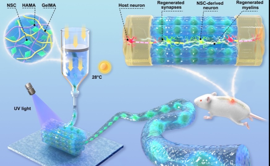 近日,beat365英国官方网站材料学院王秀梅团队和清华长庚医院神经外科王贵怀主任团队基于生物3D打印技术成功制备了一种有生命的类神经纤维,该纤维由类似于天然细胞外基质的水凝胶包裹着高密度的神经干细胞组成,纤维定向排列并组装为精准适配脊髓损伤区域大小的微型...