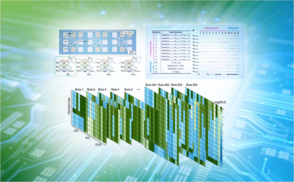 2023.05集成电路学院任天令团队提出元胞自动机算法集成至二维晶体管和忆阻器混合电路方案