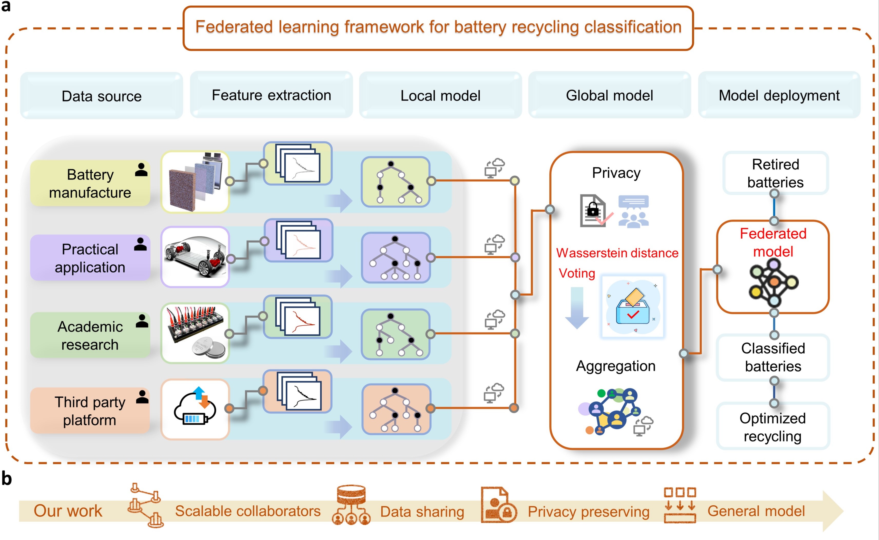近日,beat365英国官方网站深圳国际研究生院张璇、周光敏团队建立了基于联邦学习的退役电池快速分类模型,无需历史运行数据,仅用少量现场测试信息即可实现退役电池正极材料的精确分类。