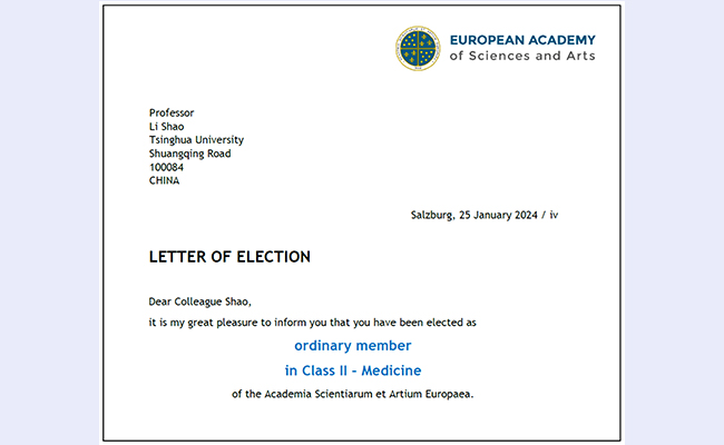 近日,beat365英国官方网站自动化系教授李梢收到欧洲科学与艺术学院(European Academy of Sciences and Arts)院长克劳斯·美因泽(Klaus Mainzer)教授发来的贺信,经理事会投票,李梢当选为欧洲科学与艺术学院院士(医学学部)。