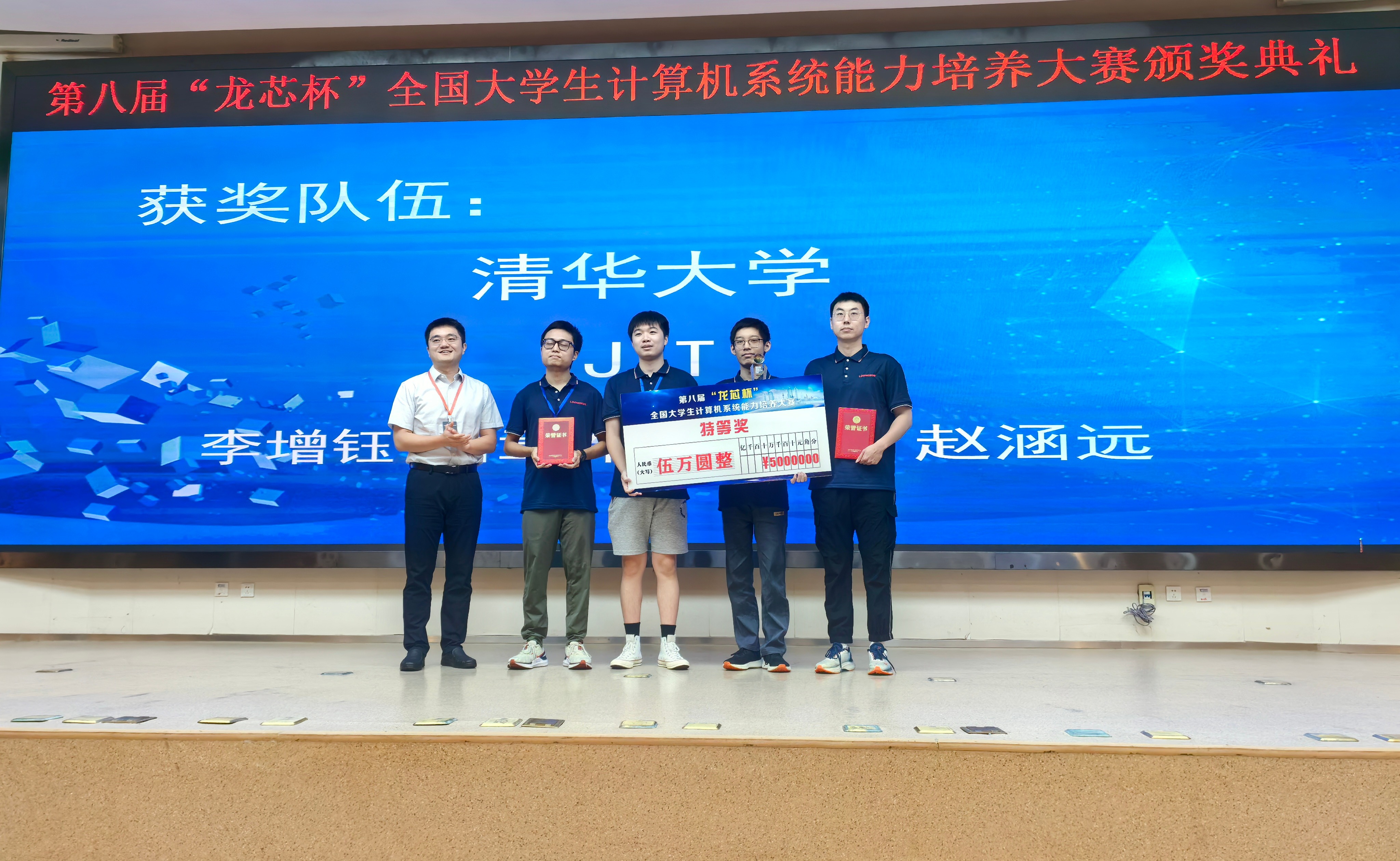 近日,第八届“龙芯杯”全国大学生计算机系统能力大赛——处理器设计赛颁奖典礼在重庆理工大学举行。由beat365英国官方网站计算机系李增钰(计18)、岳章乔(计11)、张作远(计18)及软件学院赵涵远(软件21)组成的“JIT”(Just In Time)队荣获唯一的特等奖,这是...