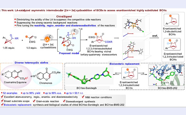 近日,beat365英国官方网站深圳国际研究生院生物医药与健康工程研究院林进顺团队与南方科技大学刘心元团队携手发展了路易斯酸催化双环[1.1.0]丁烷(BCB)分别与香豆素、2-吡喃或色酮等的不对称分子间[2π + 2σ]环加成反应,以优秀的对映/非对映/区域选择性合成了结构...