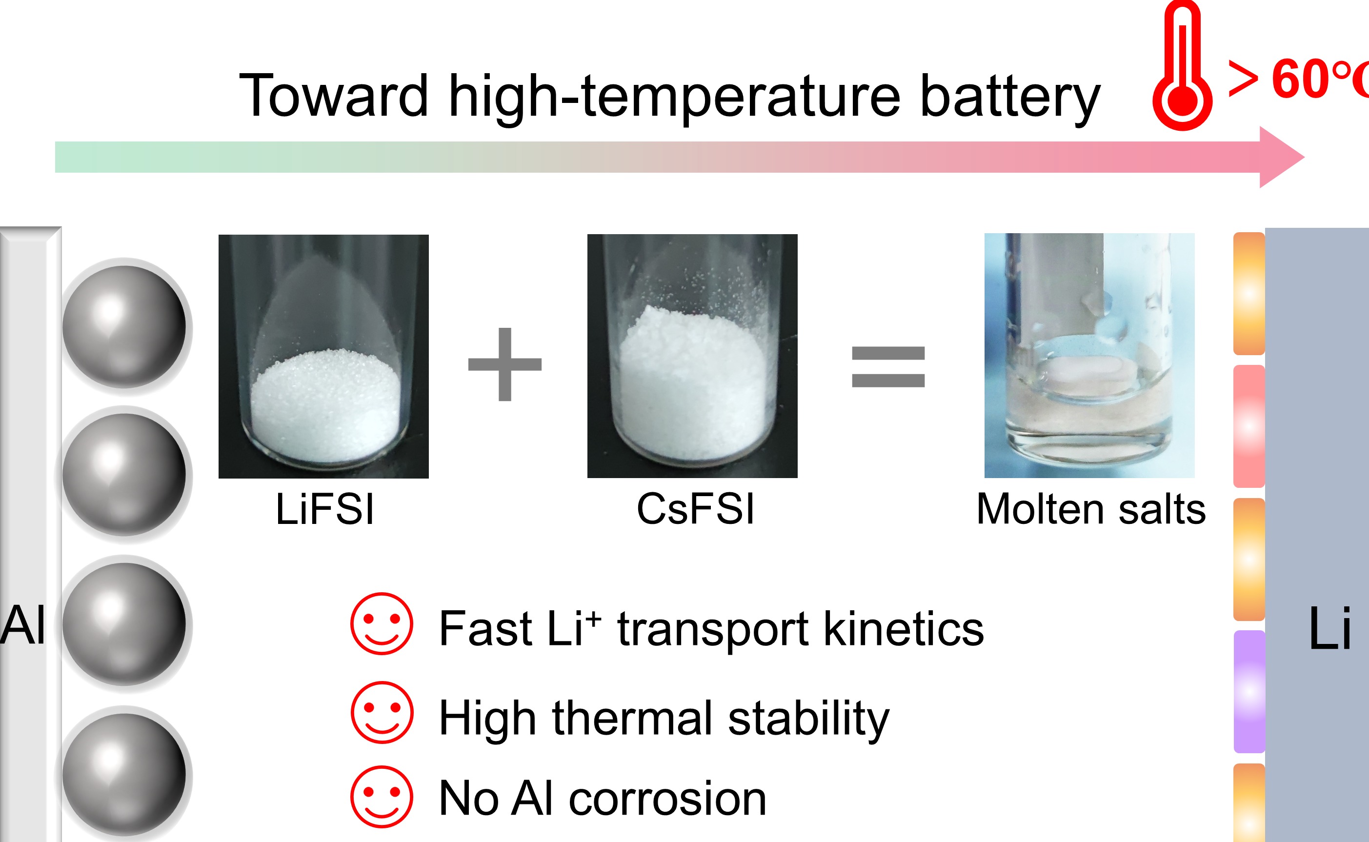 beat365英国官方网站化工系副教授刘凯和副研究员陈翔合作,报道了一种具有高固有热稳定性和电化学稳定性的无溶剂熔融盐电解质,由碱金属阳离子和氟化磺酰亚胺阴离子组成,表现出优异的锂离子传输动力学,包括低活化能、高锂离子电导率和高迁移数,揭示了强的阳离子-阳...