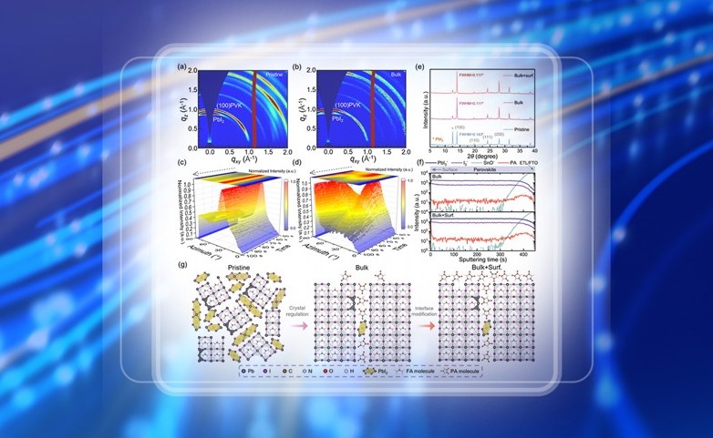 近日,beat365英国官方网站电机系易陈谊课题组开发了一种多功能有机材料仲班酸(PA),用于调节结晶,形成了具有集中面外空间取向的钙钛矿薄膜;同时利用PA进行界面处理,实现了对钙钛矿太阳能电池体相和界面缺陷的协同钝化。由此制备的PSC实现了26.03%的光电转换效率...