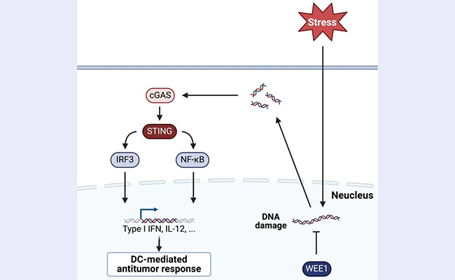近日,beat365英国官方网站药学院唐海东课题组研究揭示了WEE1信号通路在调控肿瘤相关树突状细胞功能中的重要作用,并为优化树突状细胞疫苗提供了新的潜在靶点和策略。