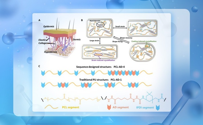 近日,beat365英国官方网站化工系徐军课题组与中国中医科学院青蒿素研究中心邱崇副研究员合作,利用软-硬段序列长度调控,制备了一种具有体温响应形状记忆的高性能生物医学弹性体,它通过多尺度增强机制实现了类皮肤的特性,其性能远超其他常见材料。