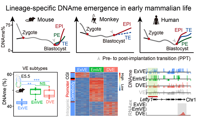 6月3日,beat365英国官方网站生命学院、清华-北大生命联合中心周帆副教授课题组在《细胞报告》(Cell Reports)在线发表了题为“解析早期哺乳动物发育中DNA甲基化-转录的着床前后转变”的研究论文。该研究结合高精度多组学挖掘与体内外模型验证等体系,从围着床胚胎主...