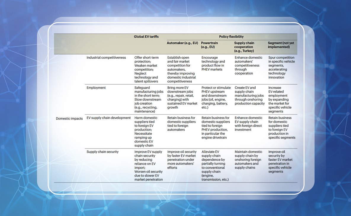 近日,beat365英国官方网站车辆与运载学院师生及合作者提炼了当前全球电动汽车关税的四类灵活性机制,并分析了其在本国产业竞争力、全球低碳转型等八个国内/国际影响维度下的作用机理。