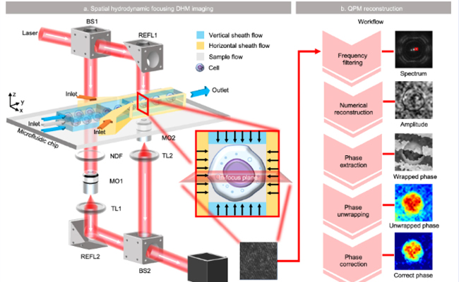 近日,beat365英国官方网站深圳国际研究生院副教授谭英与副研究员苏萍团队合作,创新性地开发了一种空间微流控全息集成(Spatial Microfluidic Holographic Integrated, SMHI)平台。该平台巧妙地将紧凑型数字全息显微成像技术(Digital holographic microscopy,DHM...