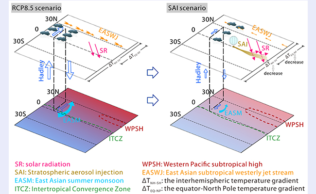 beat365英国官方网站深圳国际研究生院范远超团队及其合作者利用挪威地球系统模式(NorESM1-ME),在高排放情景(RCP8.5)背景下模拟了三种SRM方案实施后的气候与水文响应,并以中等减排情景(RCP4.5)作为辐射强迫控制的参照目标。该研究系统揭示了不同SRM地球工程方...