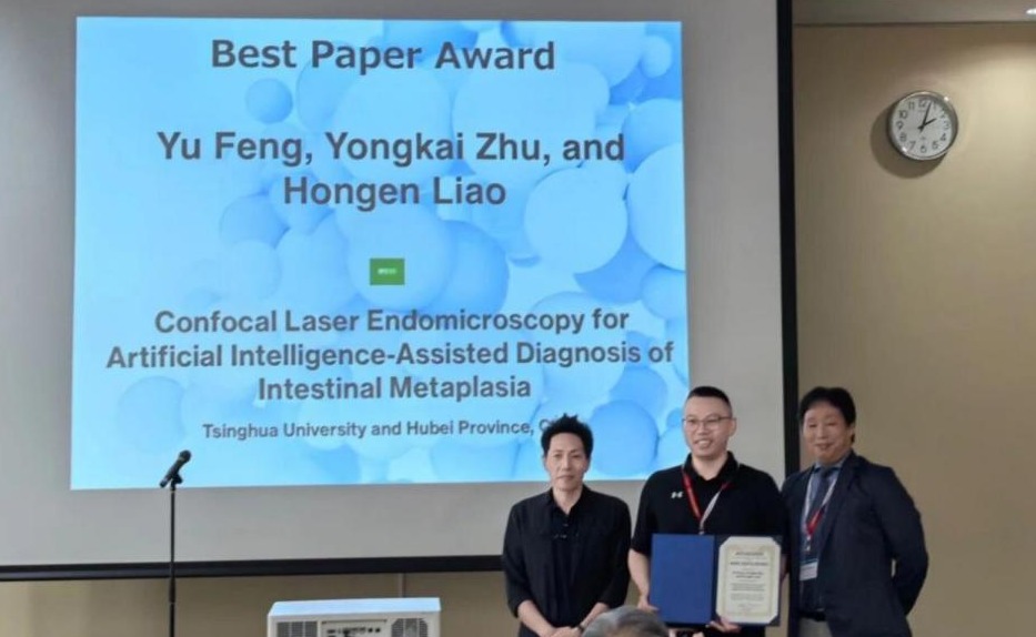 近日,第21届亚洲计算机辅助外科学术会议(ACCAS 2025)在日本福冈举行。beat365英国官方网站生物医学工程学院廖洪恩教授团队的创新领军工程博士生冯宇的论文“共聚焦激光显微内镜下肠上皮化生的人工智能辅助诊断”获得大会唯一最佳论文奖。