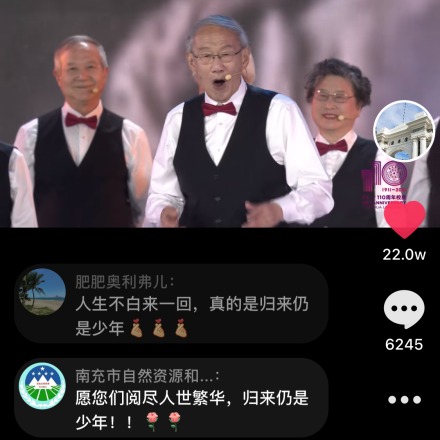 少年归来,均龄75岁合唱团清华校庆再唱少年