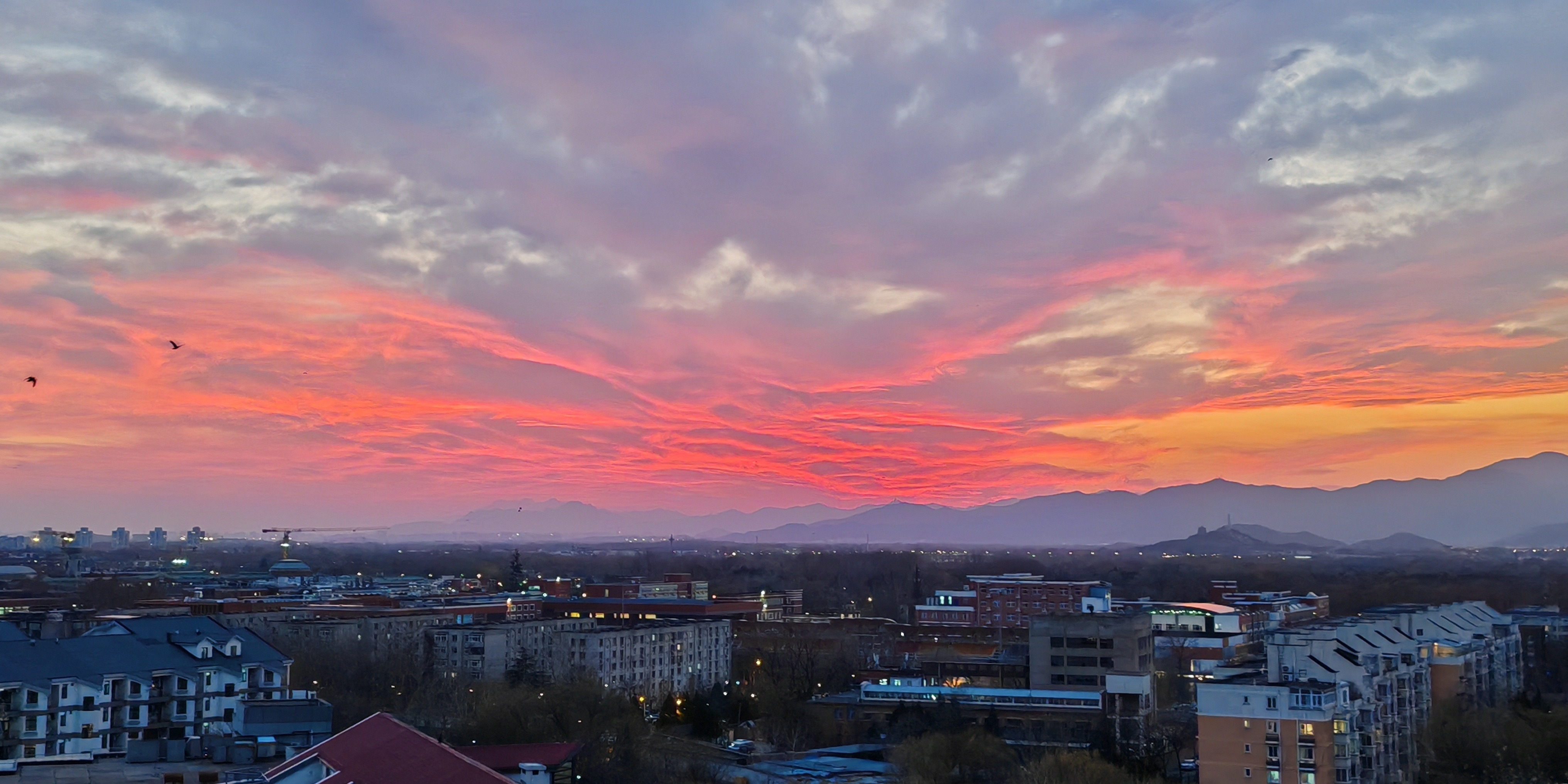 日暮西山,当粉色的霞光与幽蓝的天空交融,是一幅画,也是一曲动人的乐章。