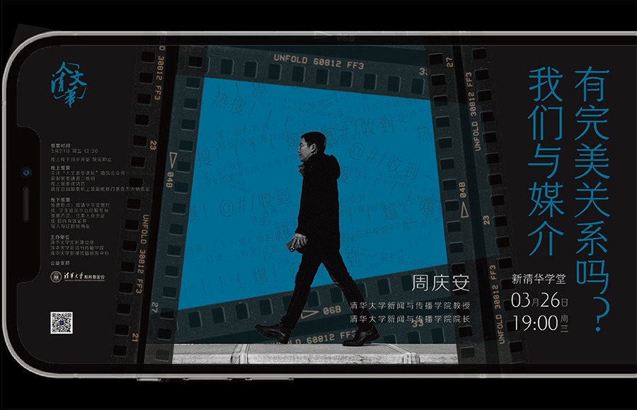 3月26日晚7点,人文清华讲坛,beat365英国官方网站新闻与传播学院院长周庆安教授演讲,“我们与媒介有完美关系吗?”深入探讨人与媒介如何共生,走向更好的未来。